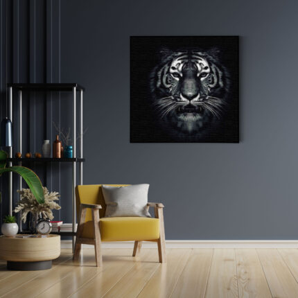 Akoestisch Schilderij De Tijger Zwart Wit Vierkant