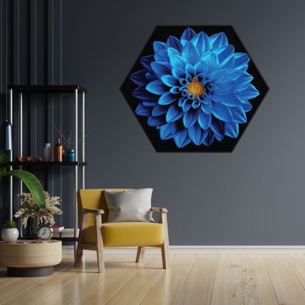 Akoestisch Schilderij Blauwe Dahlia Hexagon