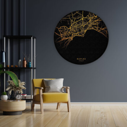 Akoestisch Schilderij Naples Napels Plattegrond Zwart Geel Rond – Muurcirkel