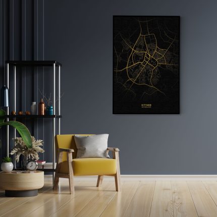 Akoestisch Schilderij Sittard Plattegrond Zwart Geel Rechthoek Verticaal