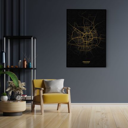 Akoestisch Schilderij Zwolle Plattegrond Zwart Geel Rechthoek Verticaal