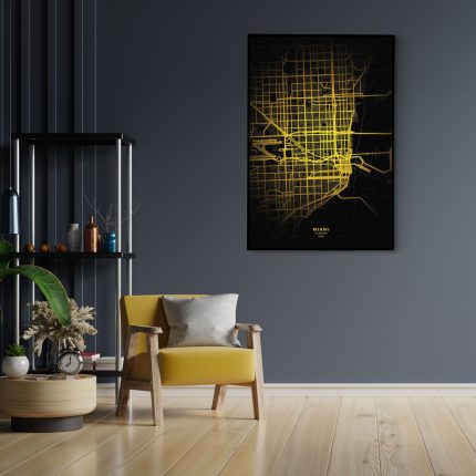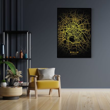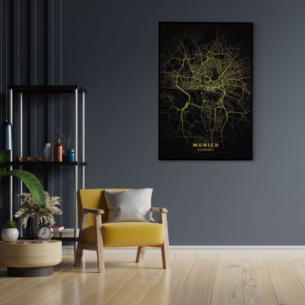 Vanaf €172,68Akoestisch Schilderij Munich München Plattegrond Zwart Geel Rechthoek Verticaal