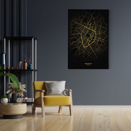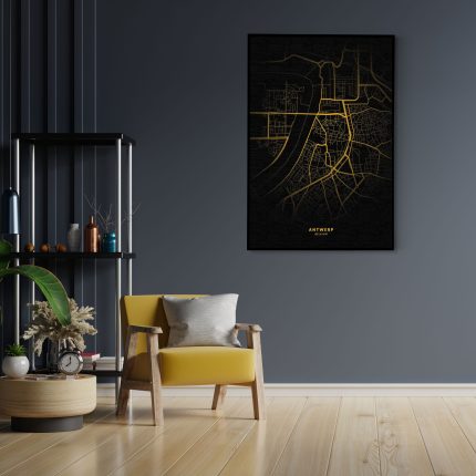 Vanaf €172,68Akoestisch Schilderij Antwerp Antwerpen Plattegrond Zwart Geel Rechthoek Verticaal