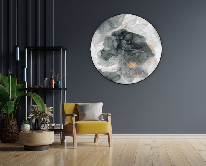 Bekijk hier het Akoestisch Schilderij Abstract Marmer Look Grijs met Goud 02Â Rond.