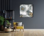 Bekijk hier het Akoestisch Schilderij Abstract Marmer Look Grijs met Goud 04 Vierkant.