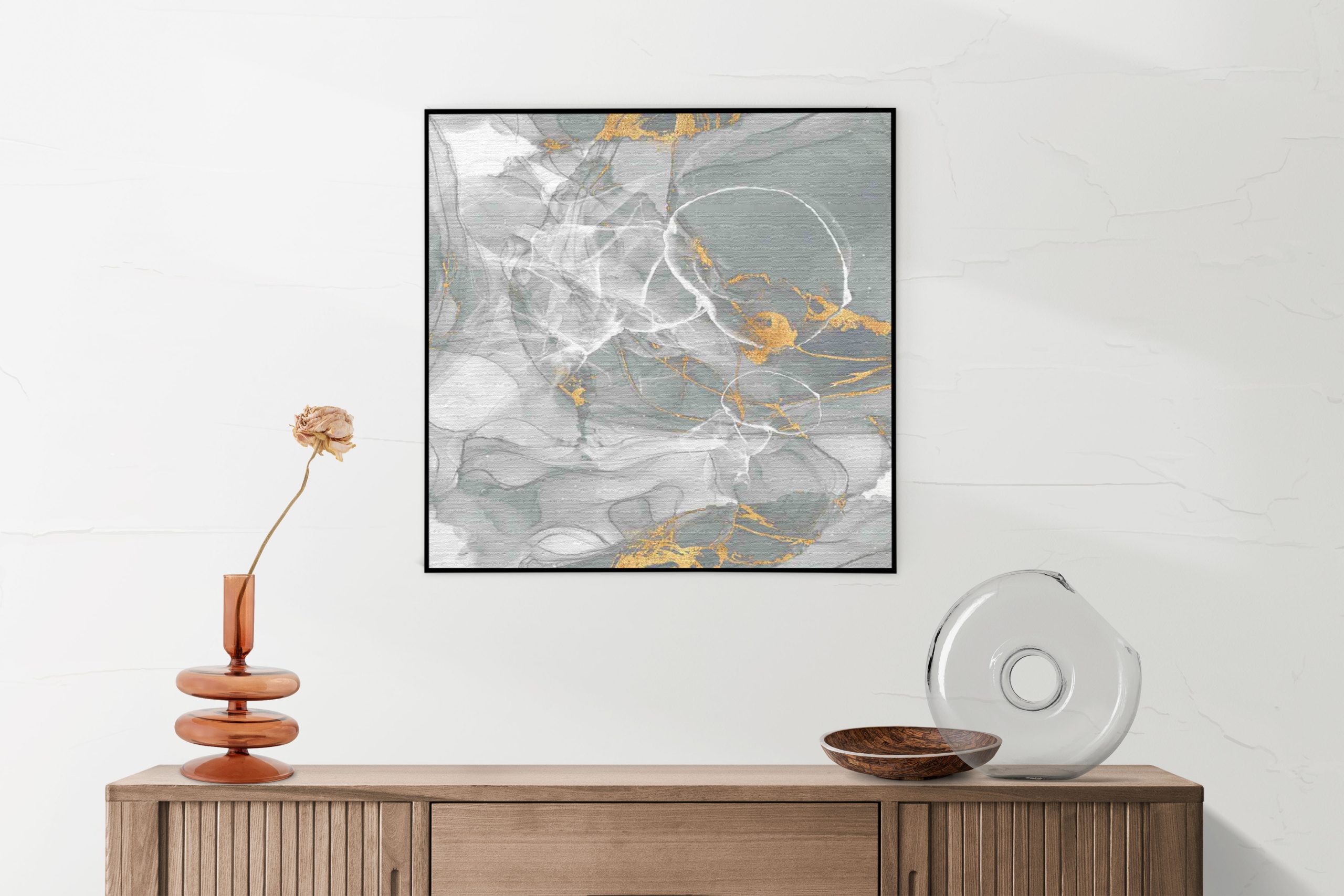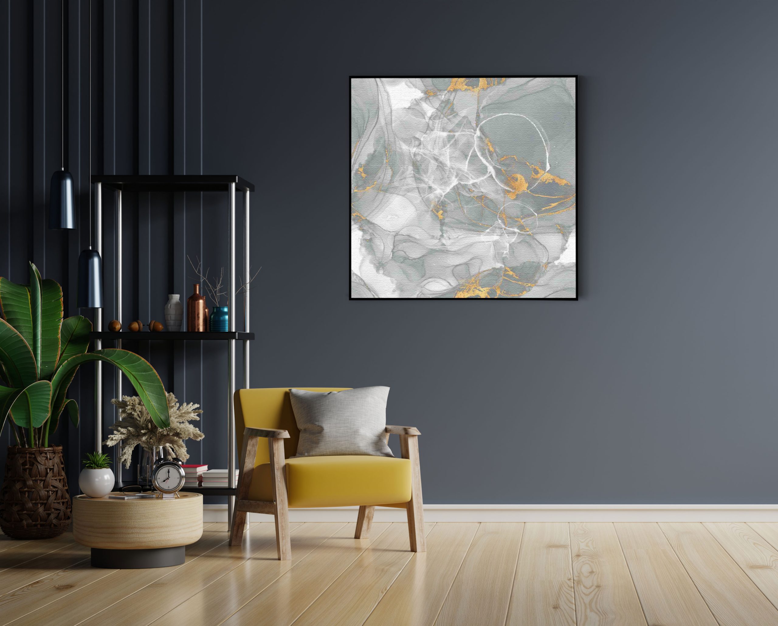 Akoestisch Schilderij – Abstract Marmer Look Grijs met Goud 06Â Vierkant