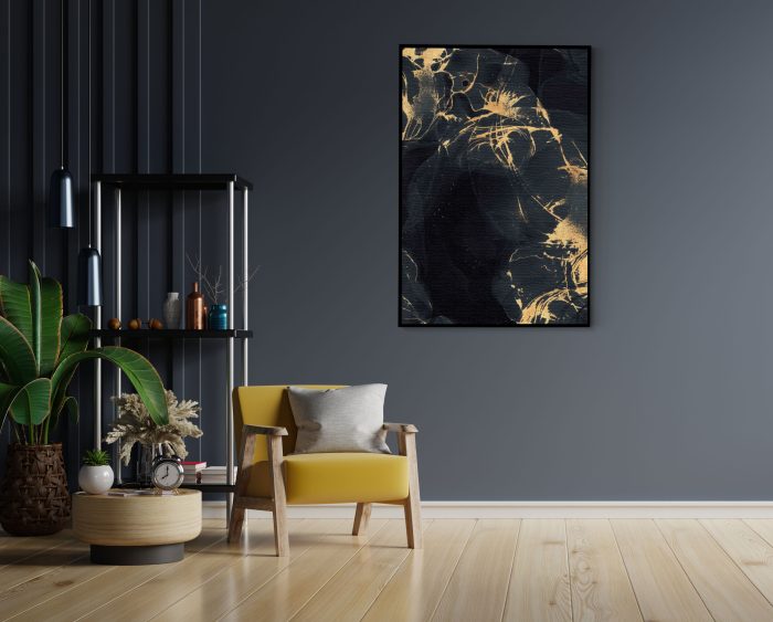 Akoestisch Schilderij – Abstract Marmer Look Zwart met Goud 04Â Rechthoek Verticaal
