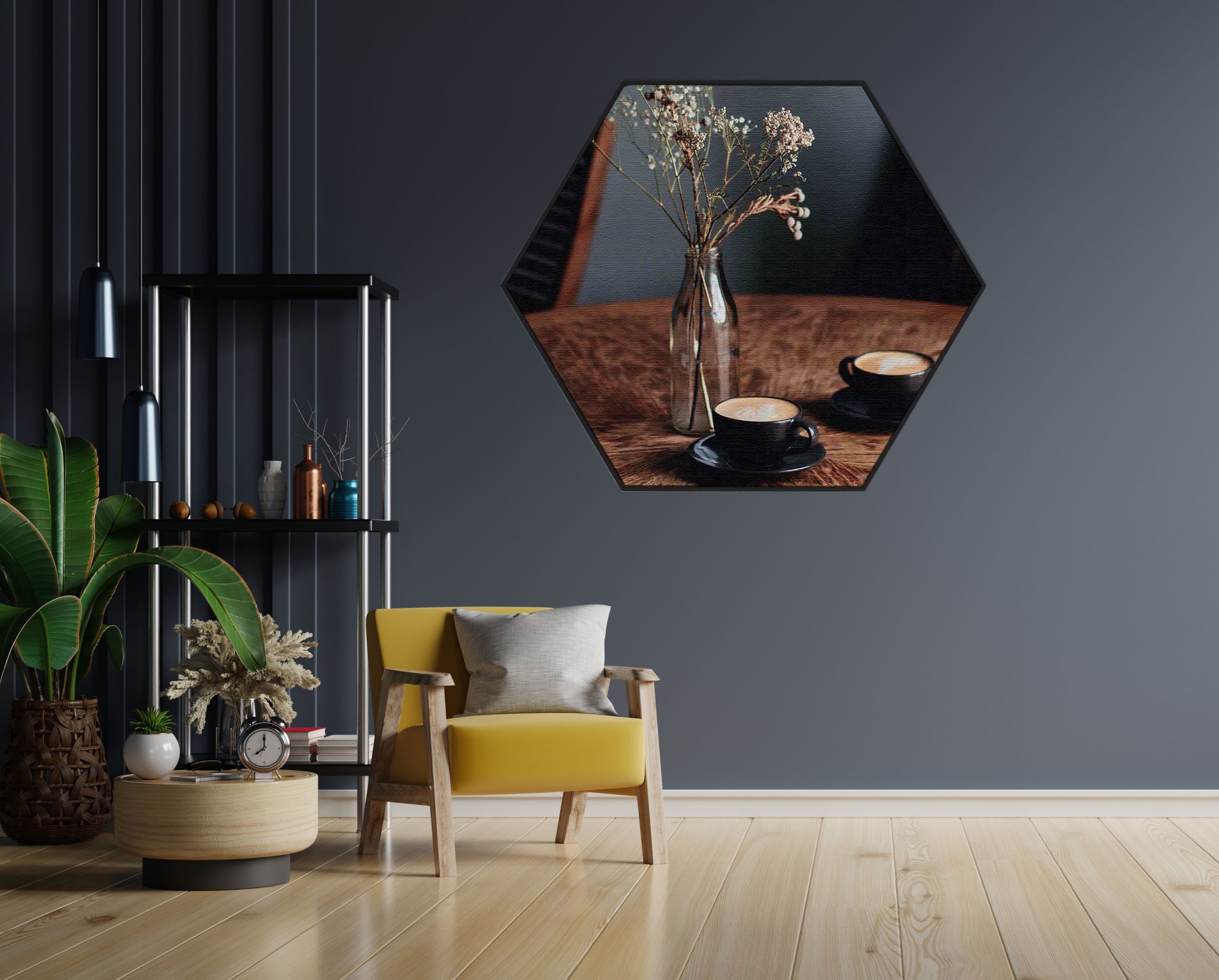 Home Eten en drinken Akoestisch Schilderij Bakje Koffie Hexagon