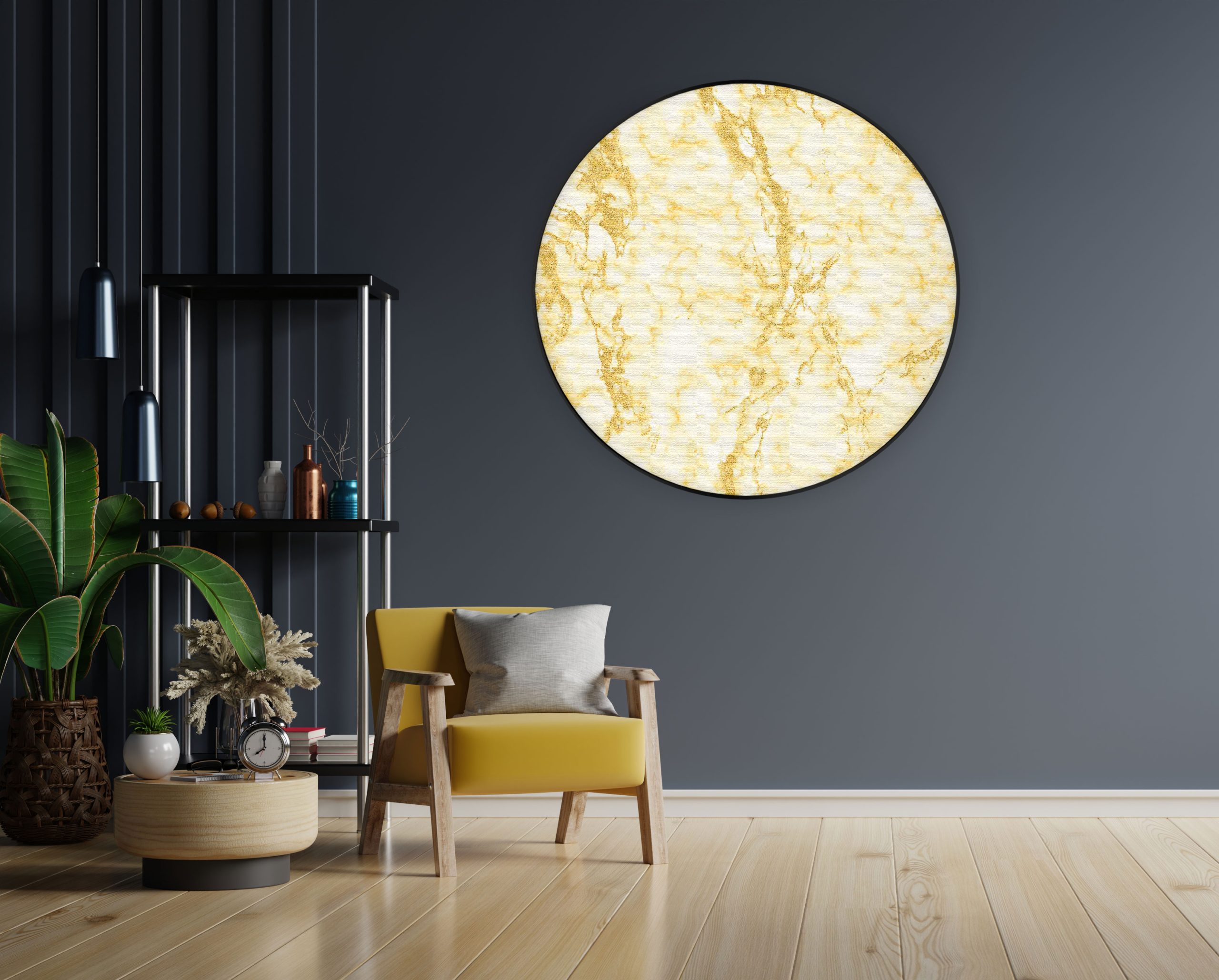 Bekijk hier het Akoestisch Schilderij Basis Marmer Look Geel Rond.