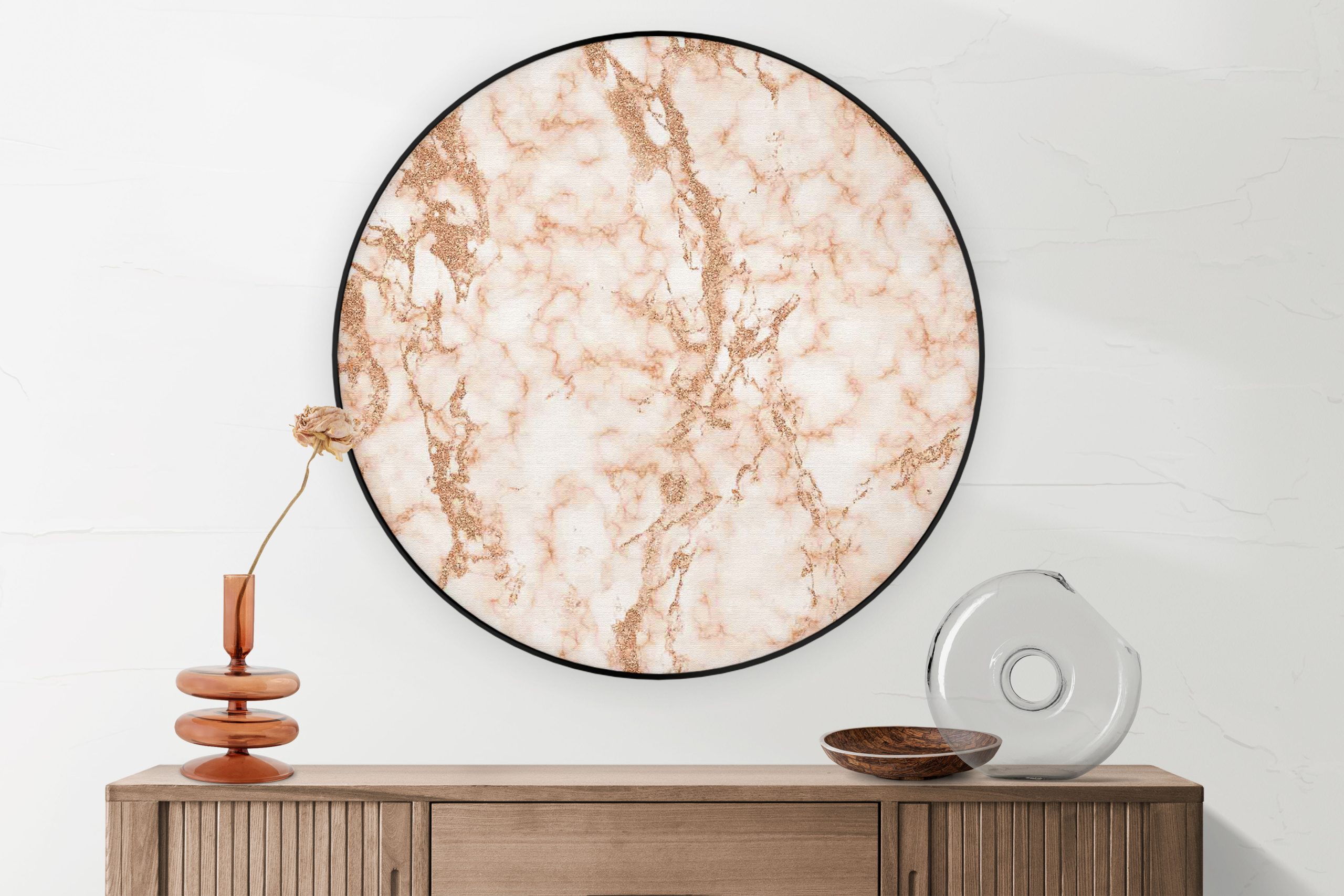 Home Marmer Akoestisch Schilderij Basis Marmer Look Oranje Rond – Muurcirkel