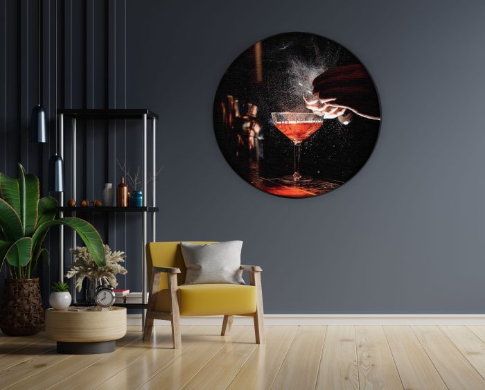 Bekijk hier het Akoestisch Schilderij Cocktail Bar 01 Rond.