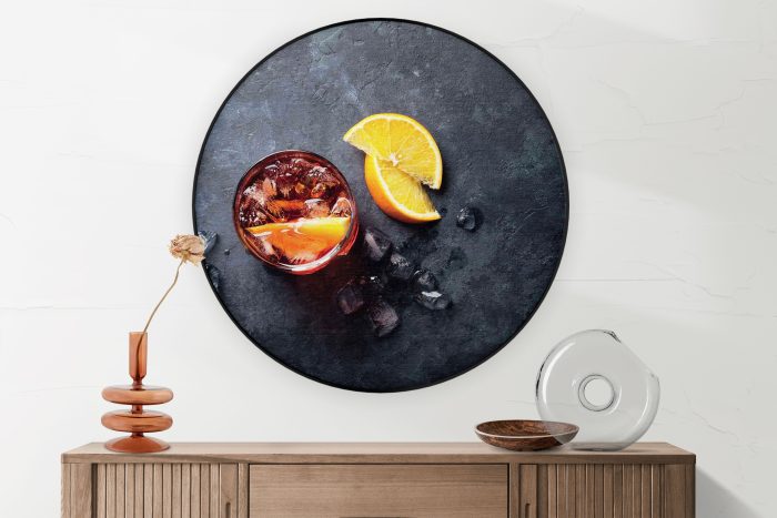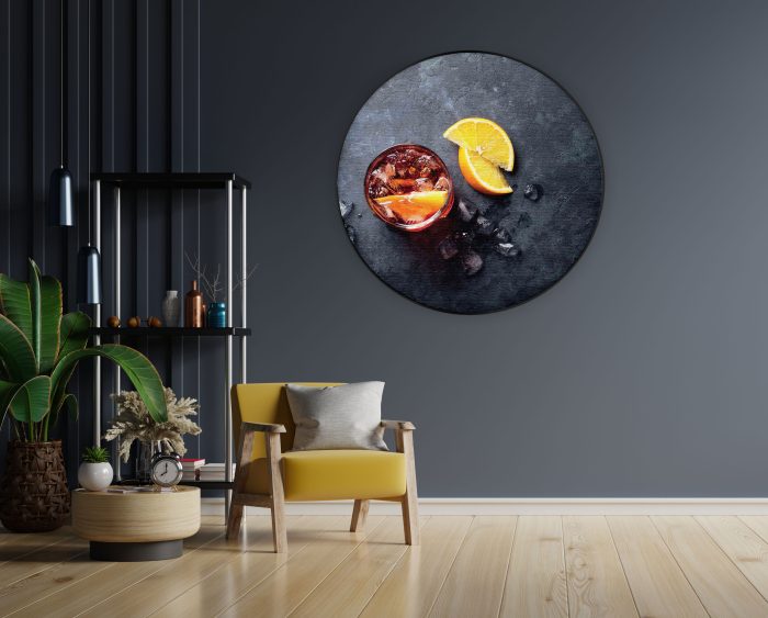 Bekijk hier het Akoestisch Schilderij Cocktail met Citroen Rond.