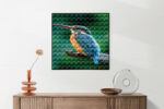 Bekijk hier het Akoestisch Schilderij De Ijsvogel Vierkant.