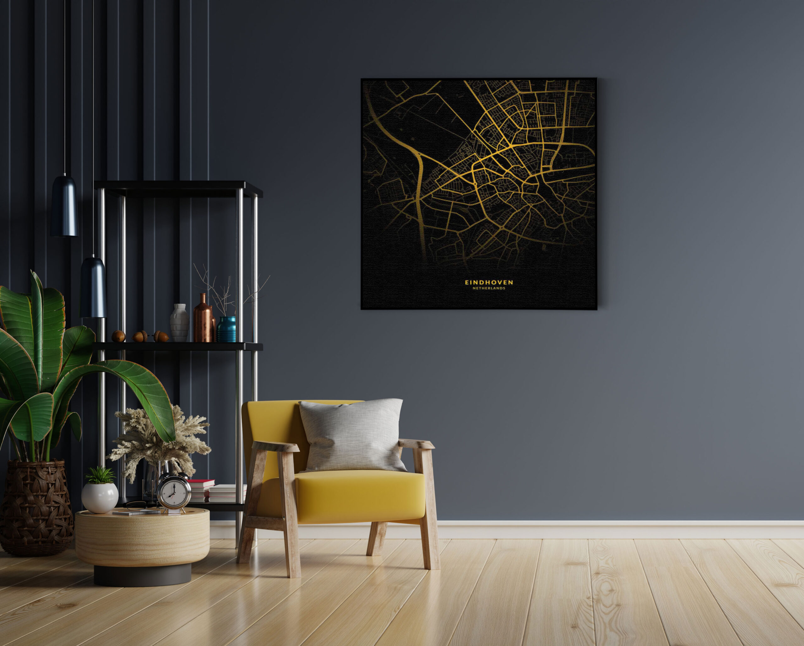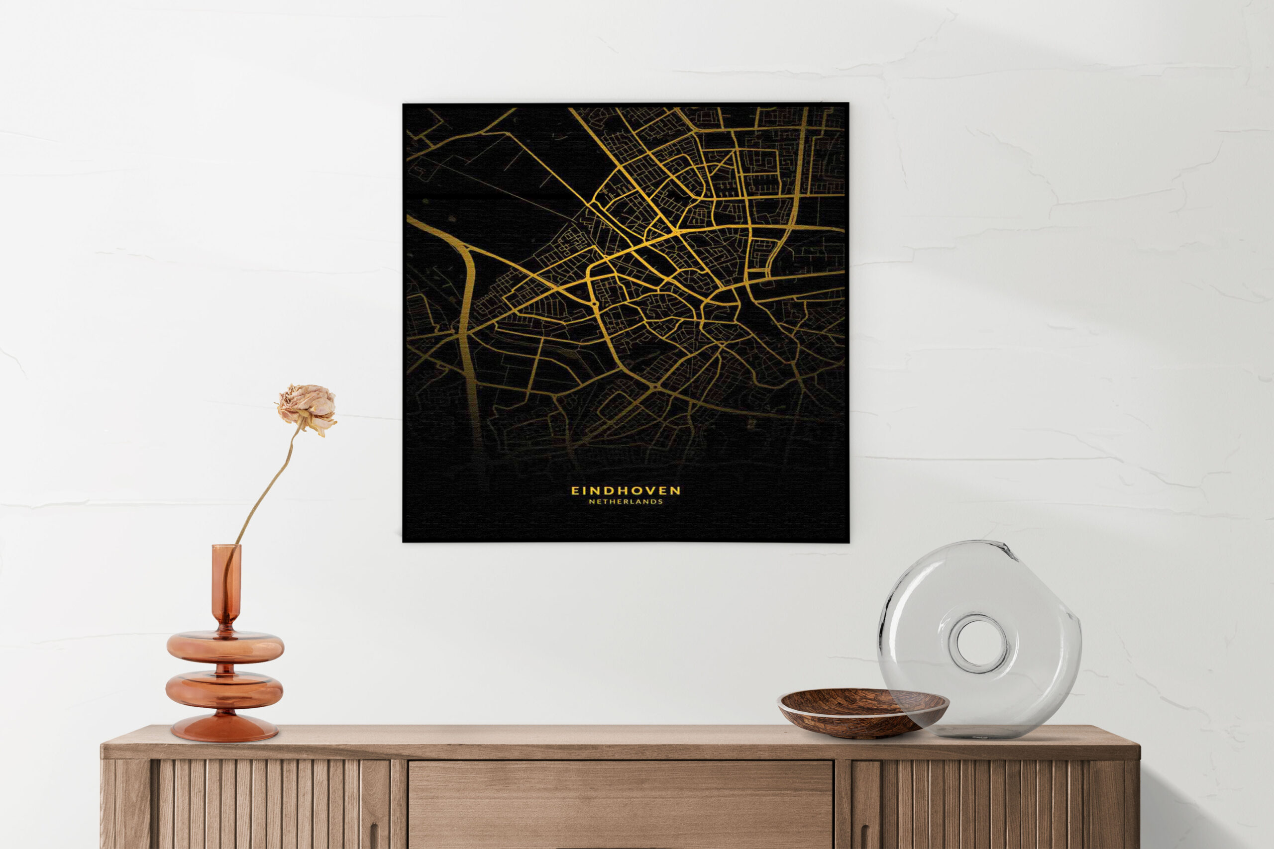 Home Steden Akoestisch Schilderij Eindhoven Plattegrond Zwart Geel Vierkant