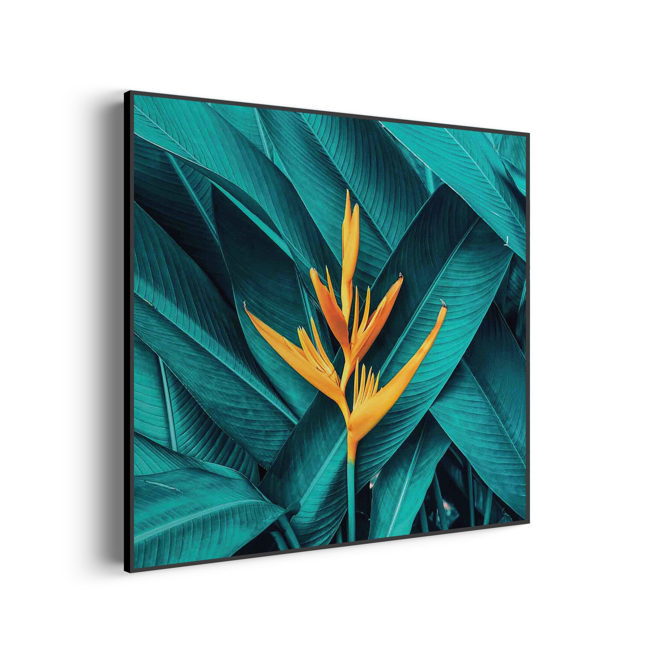 Bekijk hier het Akoestisch Schilderij Gele bloem in een blauw bladerdeken Vierkant.