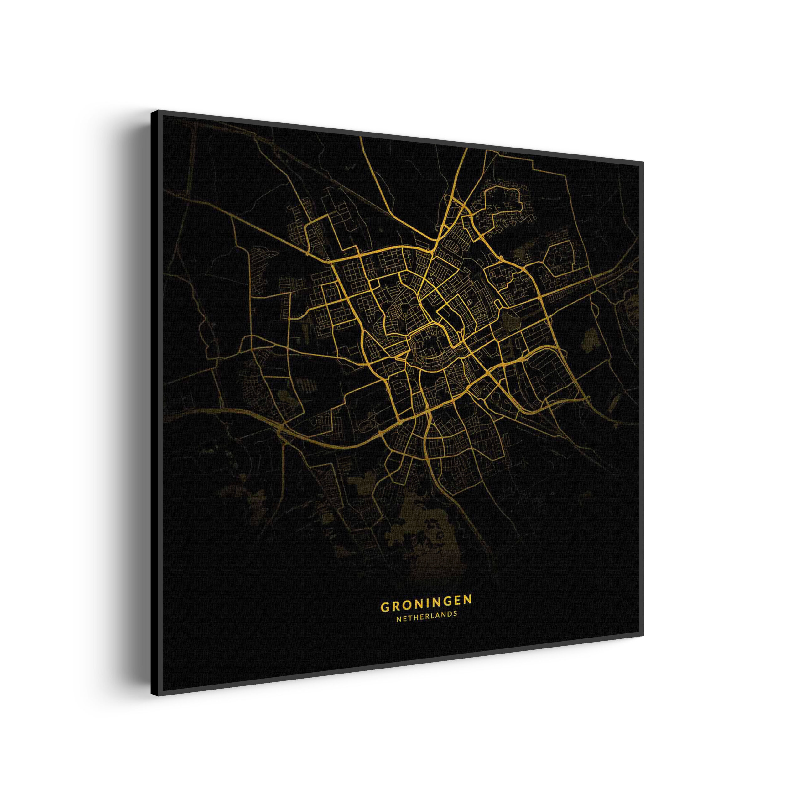 Akoestisch Schilderij – Groningen Plattegrond Zwart Geel Vierkant