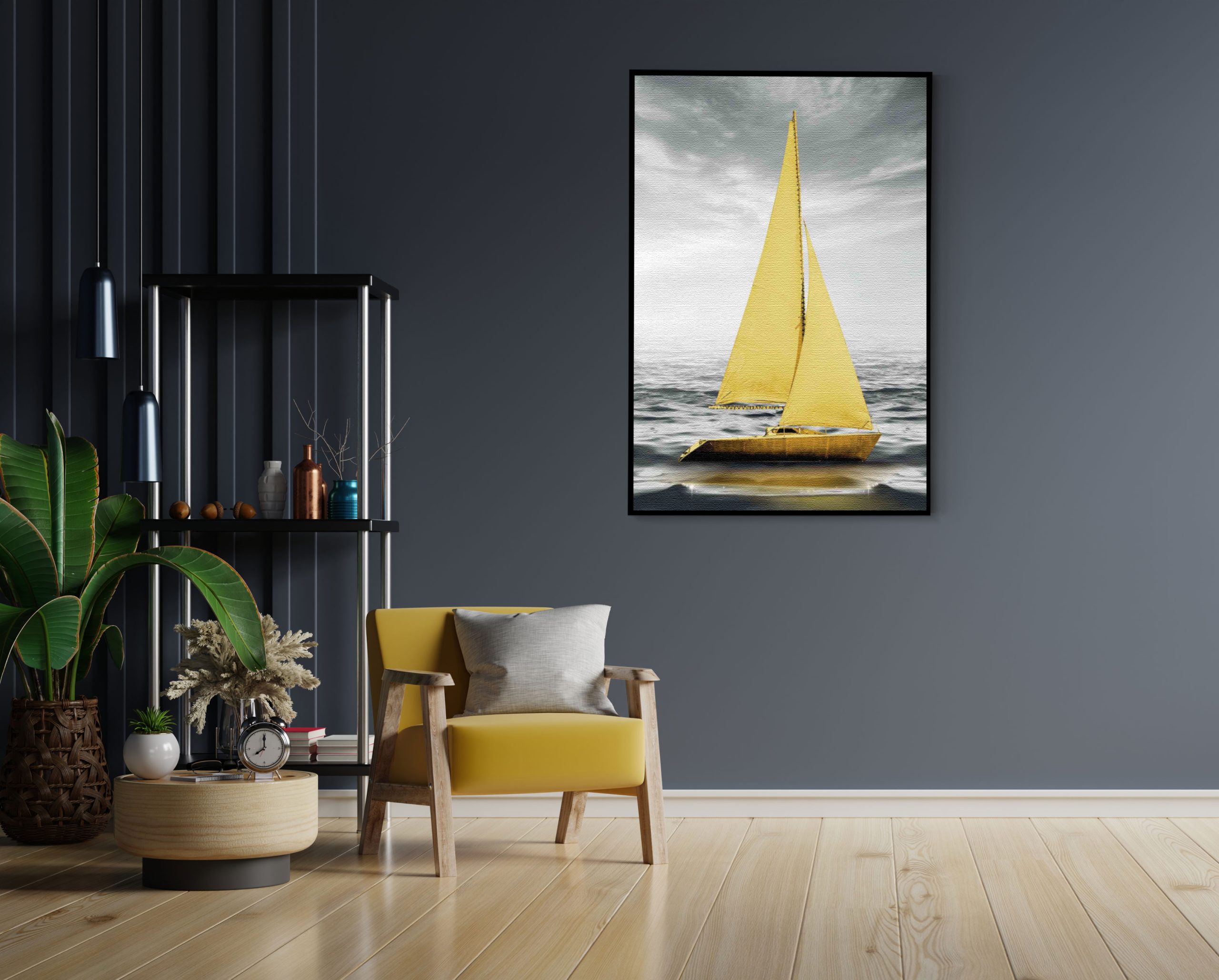 Bekijk hier het Akoestisch Schilderij Het gele bootje 2Ā Rechthoek Verticaal.