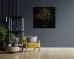 Bekijk hier het Akoestisch Schilderij Hilversum Plattegrond Zwart Geel Vierkant.