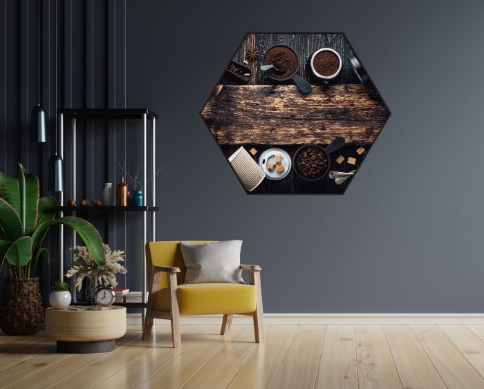 Bekijk hier het Akoestisch Schilderij Home Made Coffees Set Hexagon.