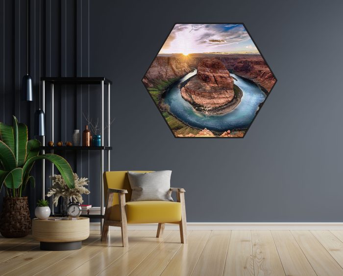 Bekijk hier het Akoestisch Schilderij Horseshoe bend Hexagon.