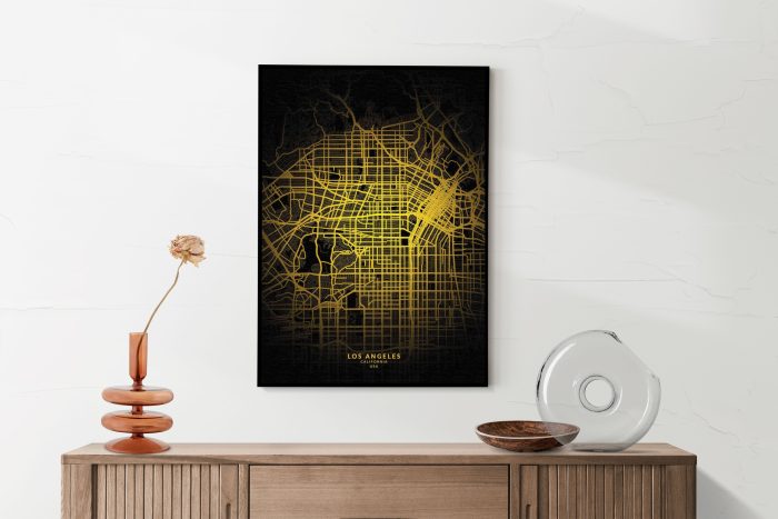 Akoestisch Schilderij – Los Angeles Plattegrond Zwart Geel Rechthoek Verticaal