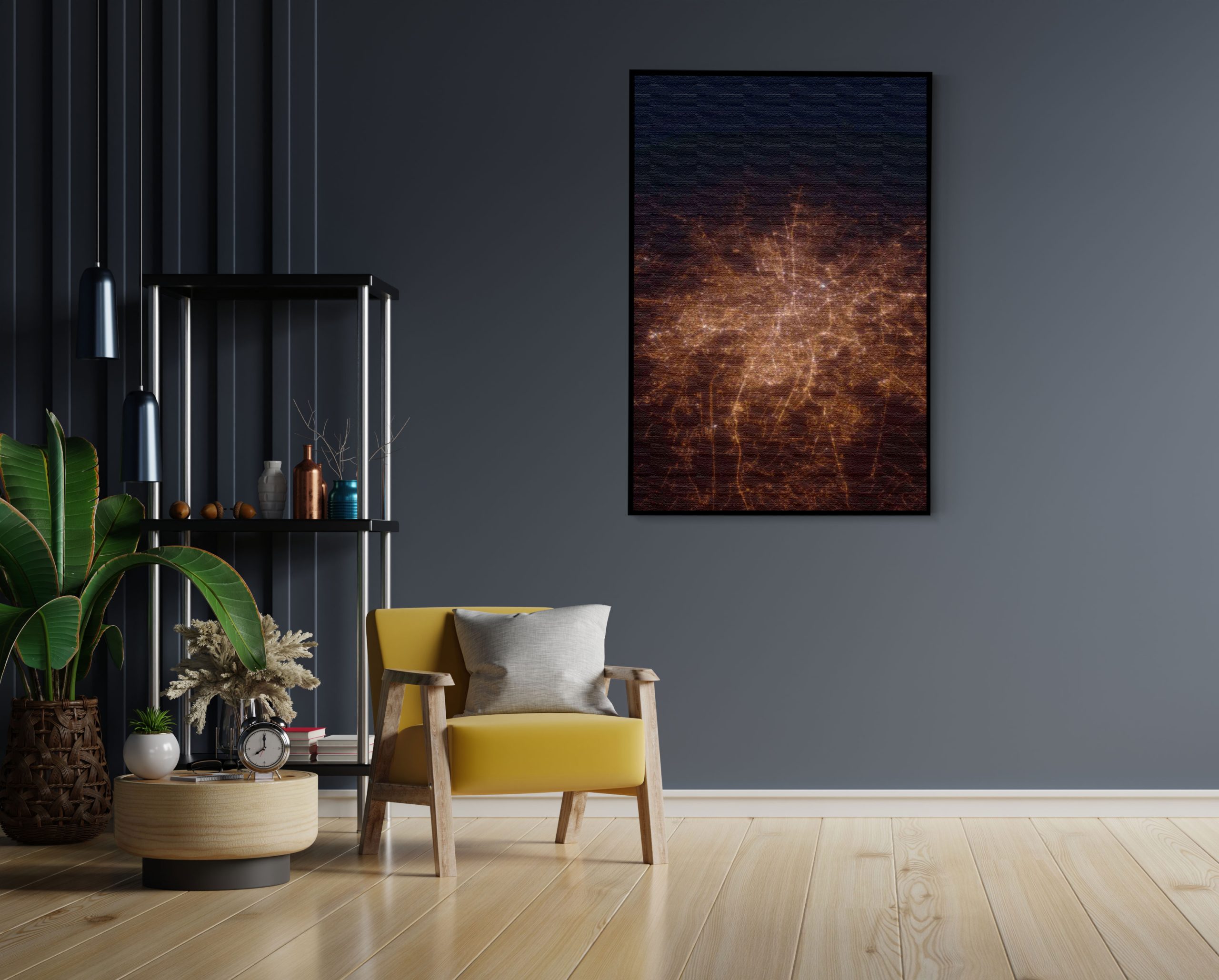 Akoestisch Schilderij – Luchtfoto Nacht 03Â Rechthoek Verticaal