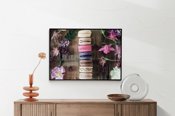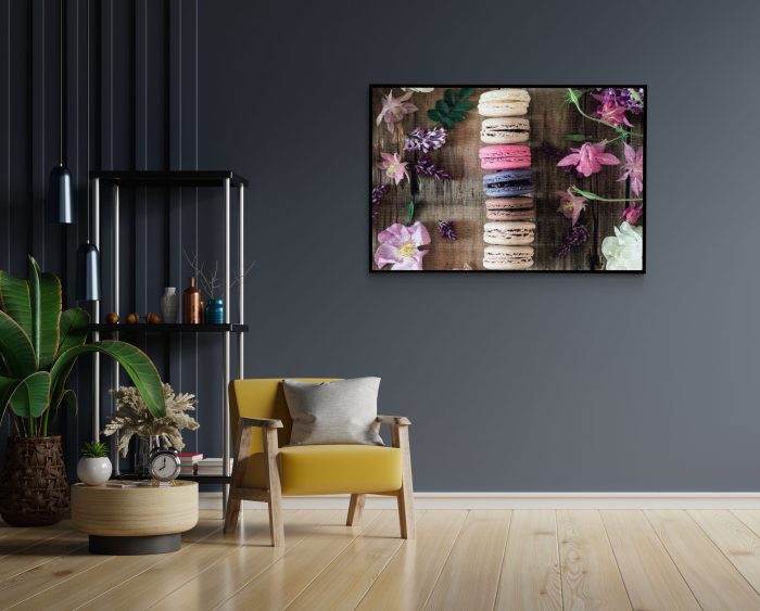 Akoestisch Schilderij – Macarons op Bloemen Tafel Rechthoek Horizontaal
