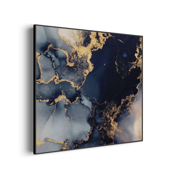 Akoestisch Schilderij – Marmer Look Chique Donker Blauwtinten met Goud 02Ā Vierkant