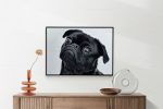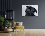 Bekijk hier het Akoestisch Schilderij Mopshond Zwart Rechthoek Horizontaal.