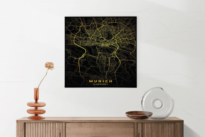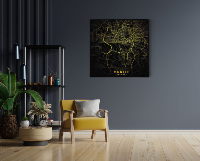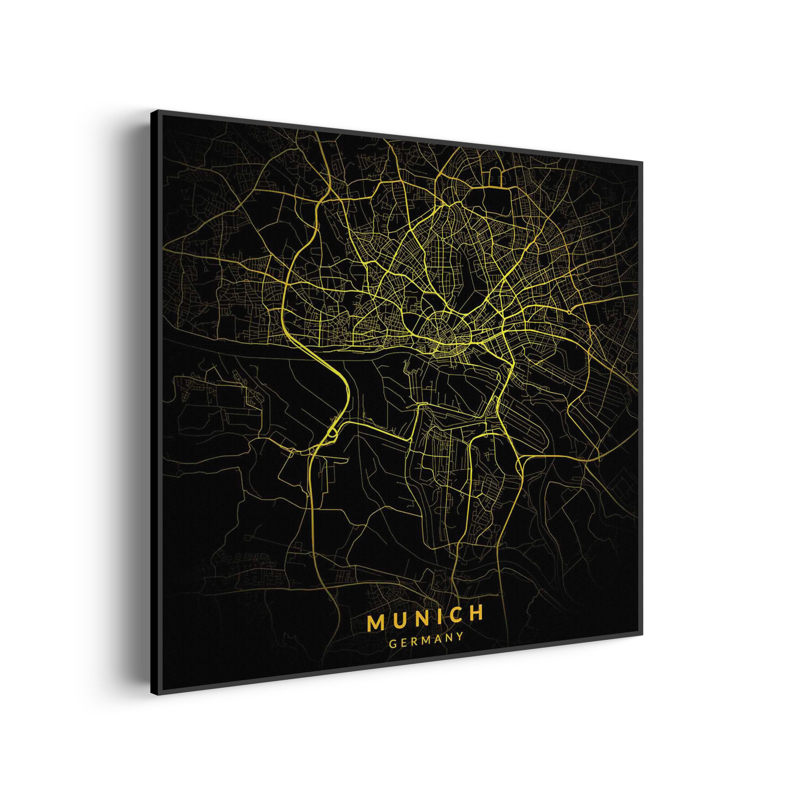Akoestisch Schilderij – Munich München Plattegrond Zwart Geel Vierkant
