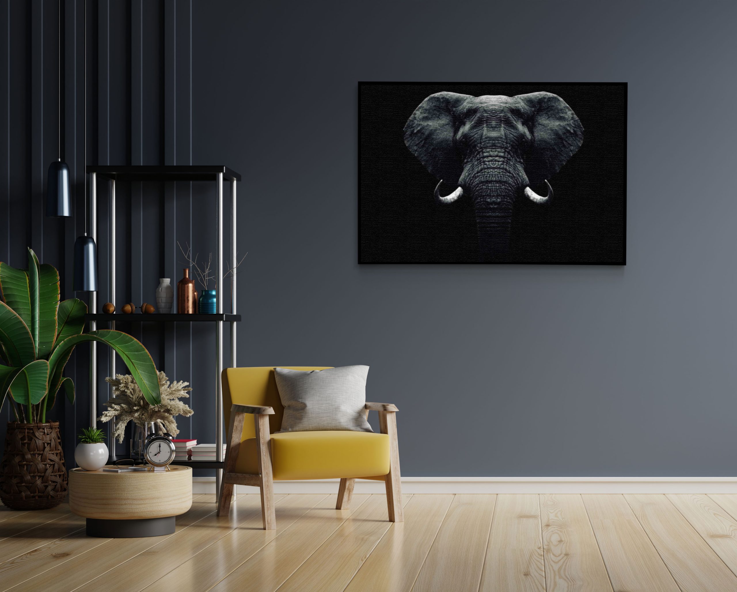 Bekijk hier het Akoestisch Schilderij Olifant Zwart Wit Rechthoek Horizontaal.