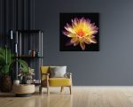 Bekijk hier het Akoestisch Schilderij Paarse Gele Dahlia Vierkant.