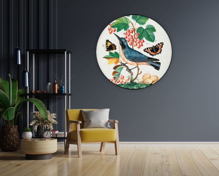 Bekijk hier het Akoestisch Schilderij Prent Natuur Vogel en Bloemen 10Â Rond.