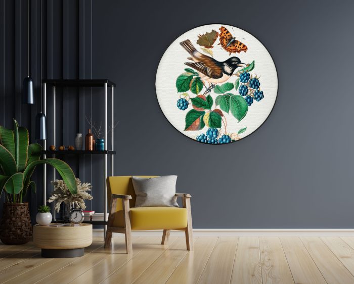 Bekijk hier het Akoestisch Schilderij Prent Natuur Vogel en Bloemen 14Â Rond.