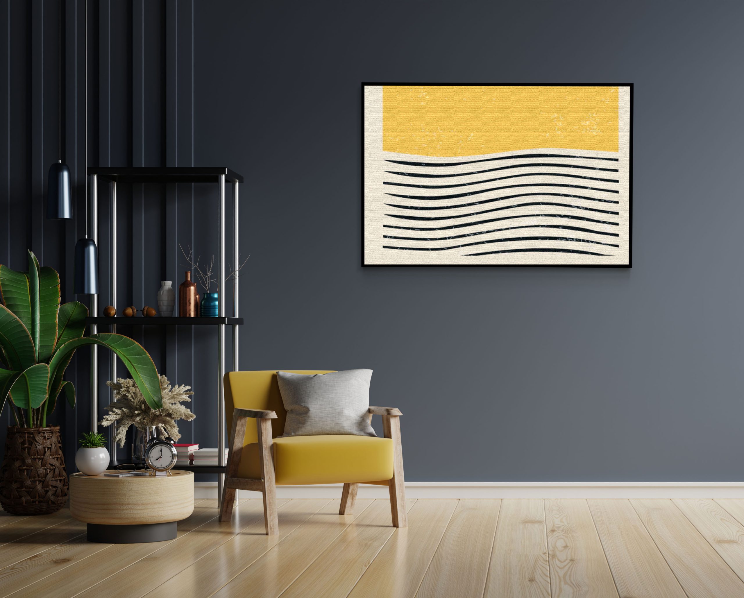 Bekijk hier het Akoestisch Schilderij Scandinavisch Basis Geel Rechthoek Horizontaal.
