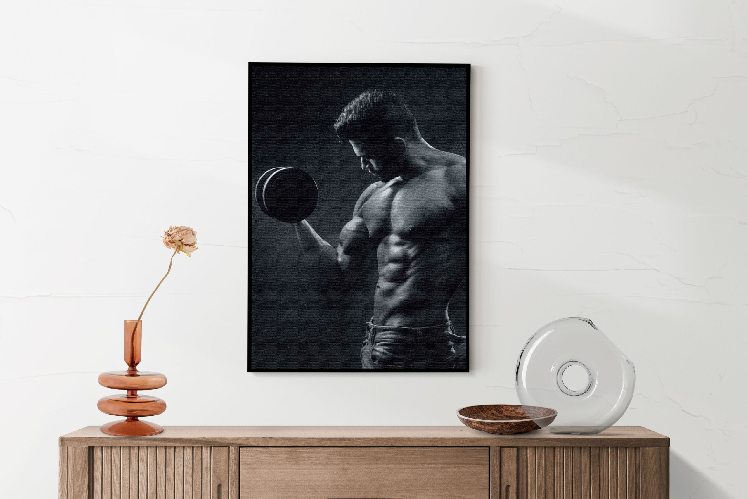 Akoestisch Schilderij – Sexy Man Heft Gewicht Met Halter Rechthoek Verticaal