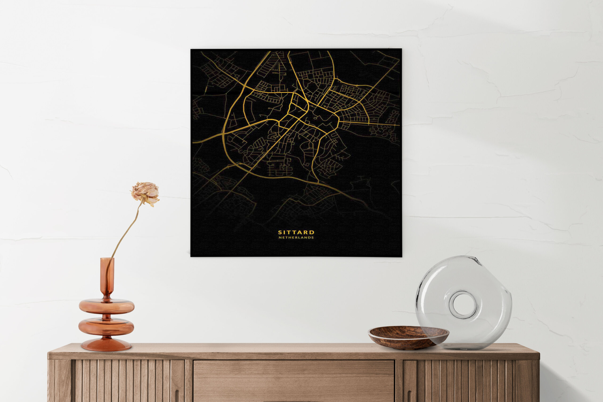 Akoestisch Schilderij – Sittard Plattegrond Zwart Geel Vierkant
