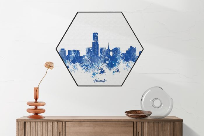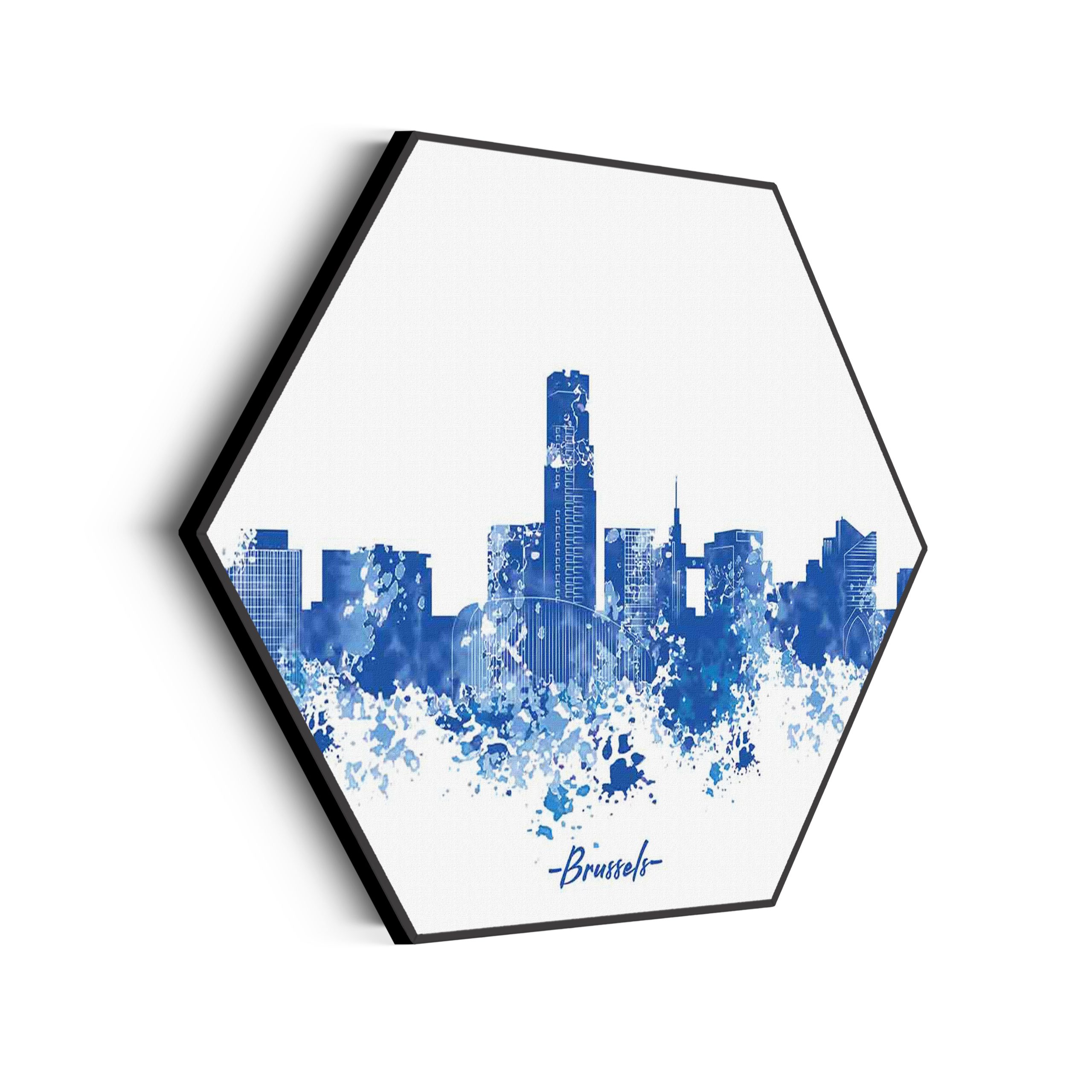 Akoestisch Schilderij – Skyline Brussels Watercolor Paint Hexagon