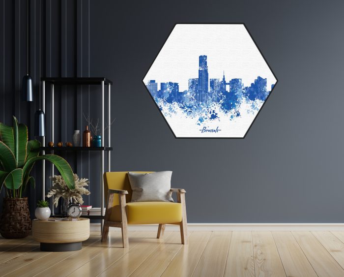 Bekijk hier het Akoestisch Schilderij Skyline Brussels Watercolor Paint Hexagon.