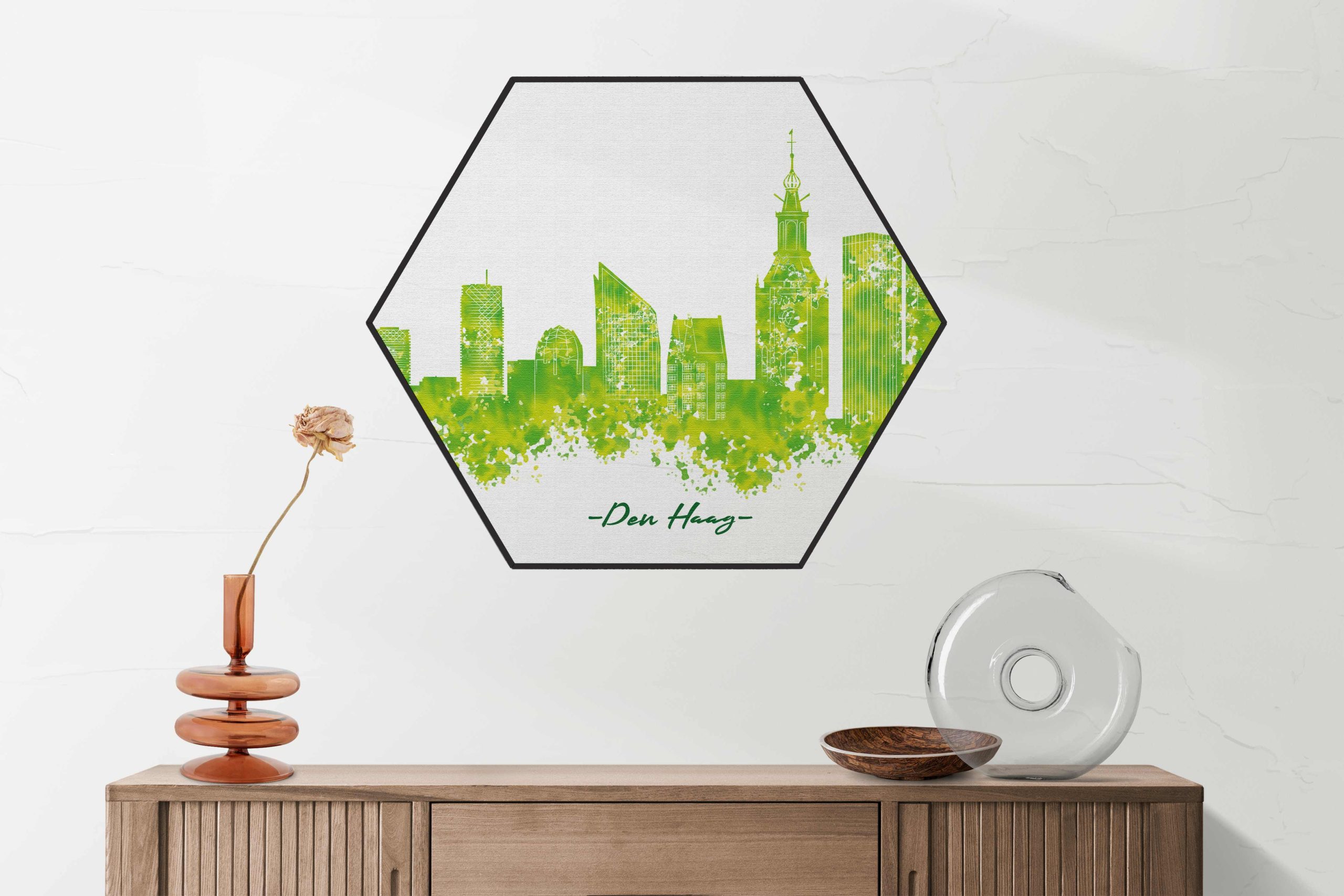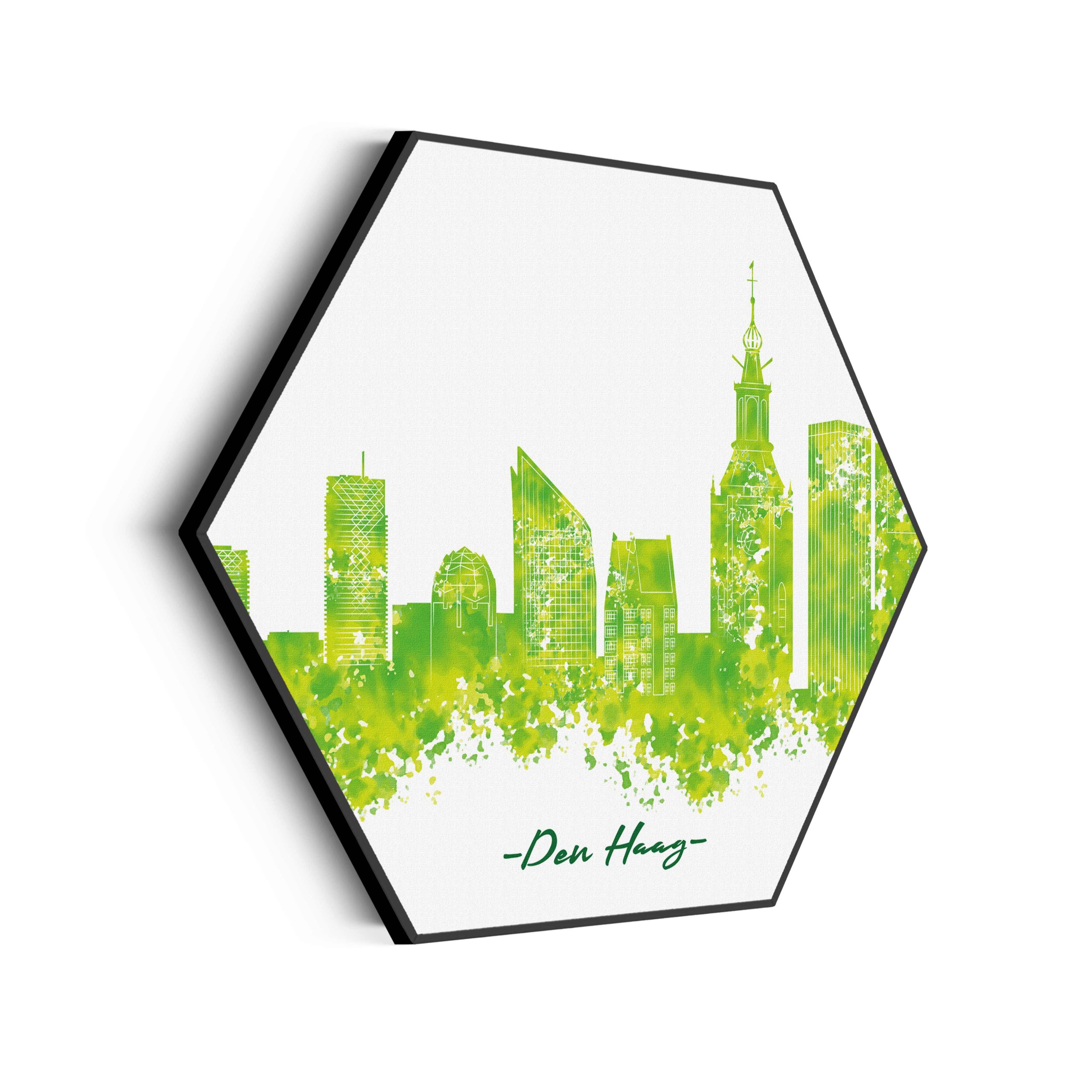 Akoestisch Schilderij – Skyline Den Haag Watercolor Paint Hexagon