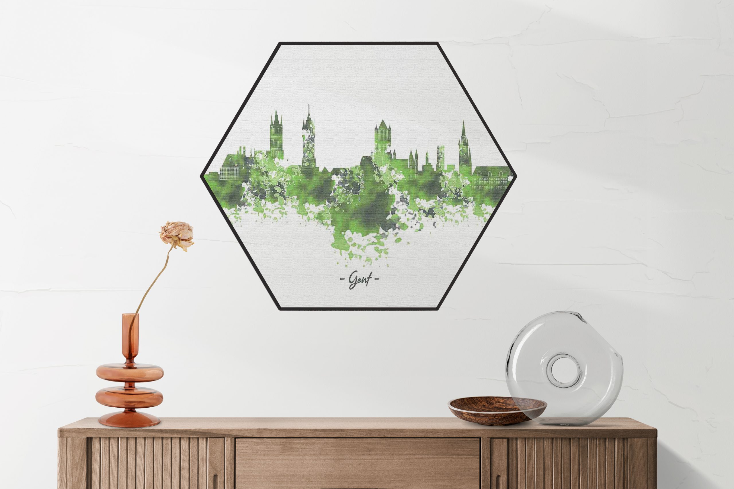 Bekijk hier het Akoestisch Schilderij Skyline Gent Watercolor Paint Hexagon.