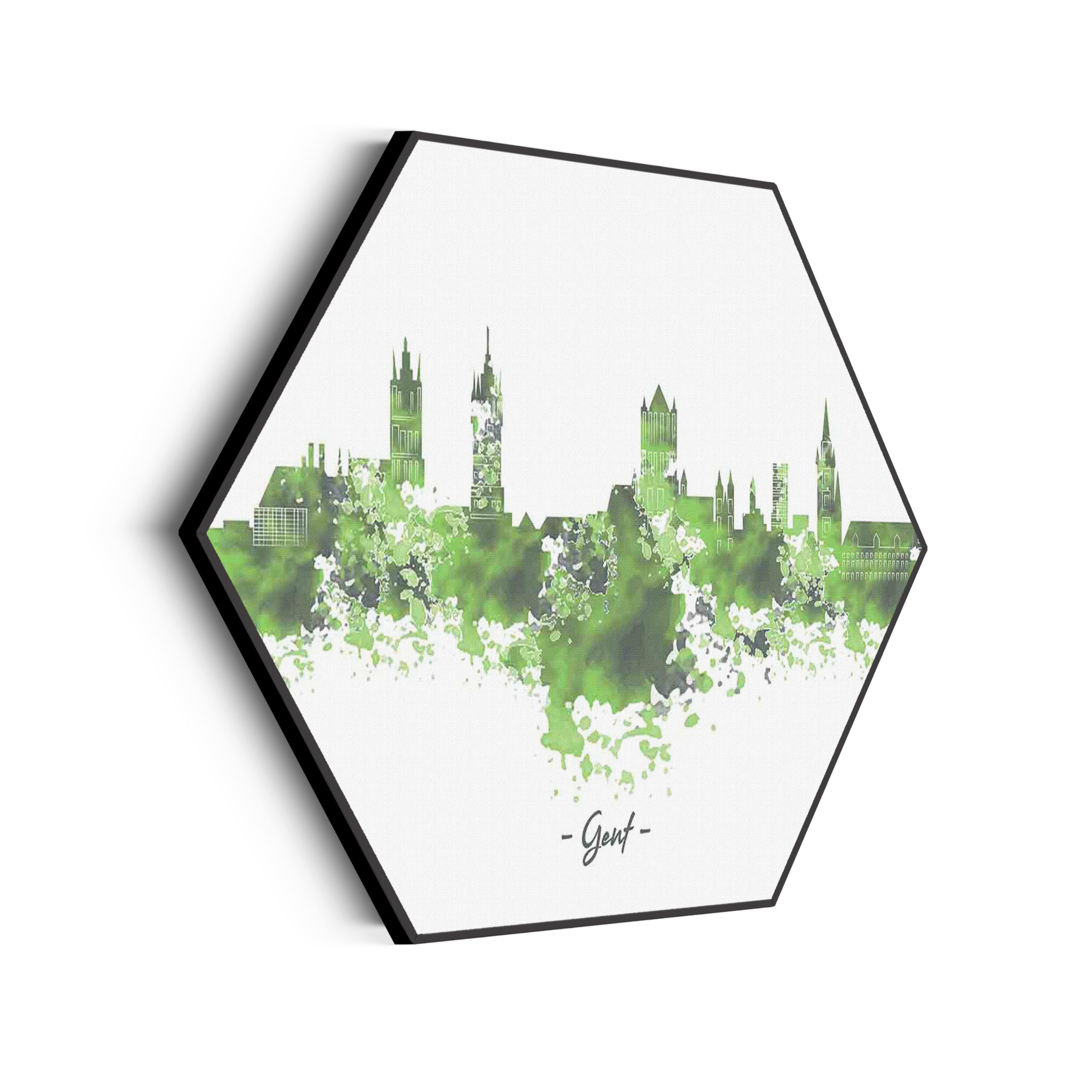 Akoestisch Schilderij – Skyline Gent Watercolor Paint Hexagon
