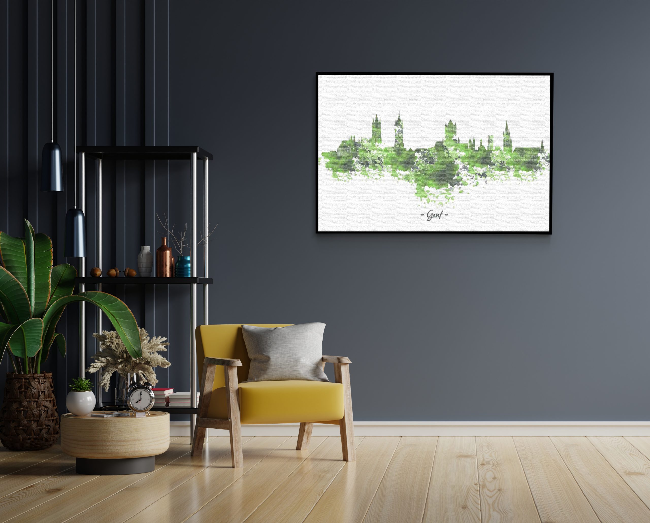 Bekijk hier het Akoestisch Schilderij Skyline Gent Watercolor Paint Rechthoek Horizontaal.