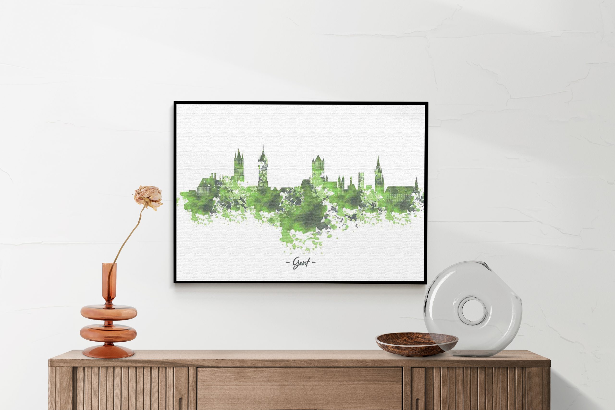 Akoestisch Schilderij – Skyline Gent Watercolor Paint Rechthoek Horizontaal
