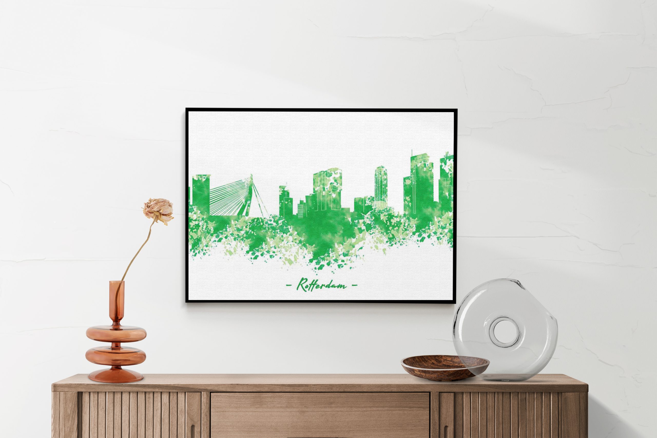Akoestisch Schilderij – Skyline Rotterdam Watercolor Paint Rechthoek Horizontaal