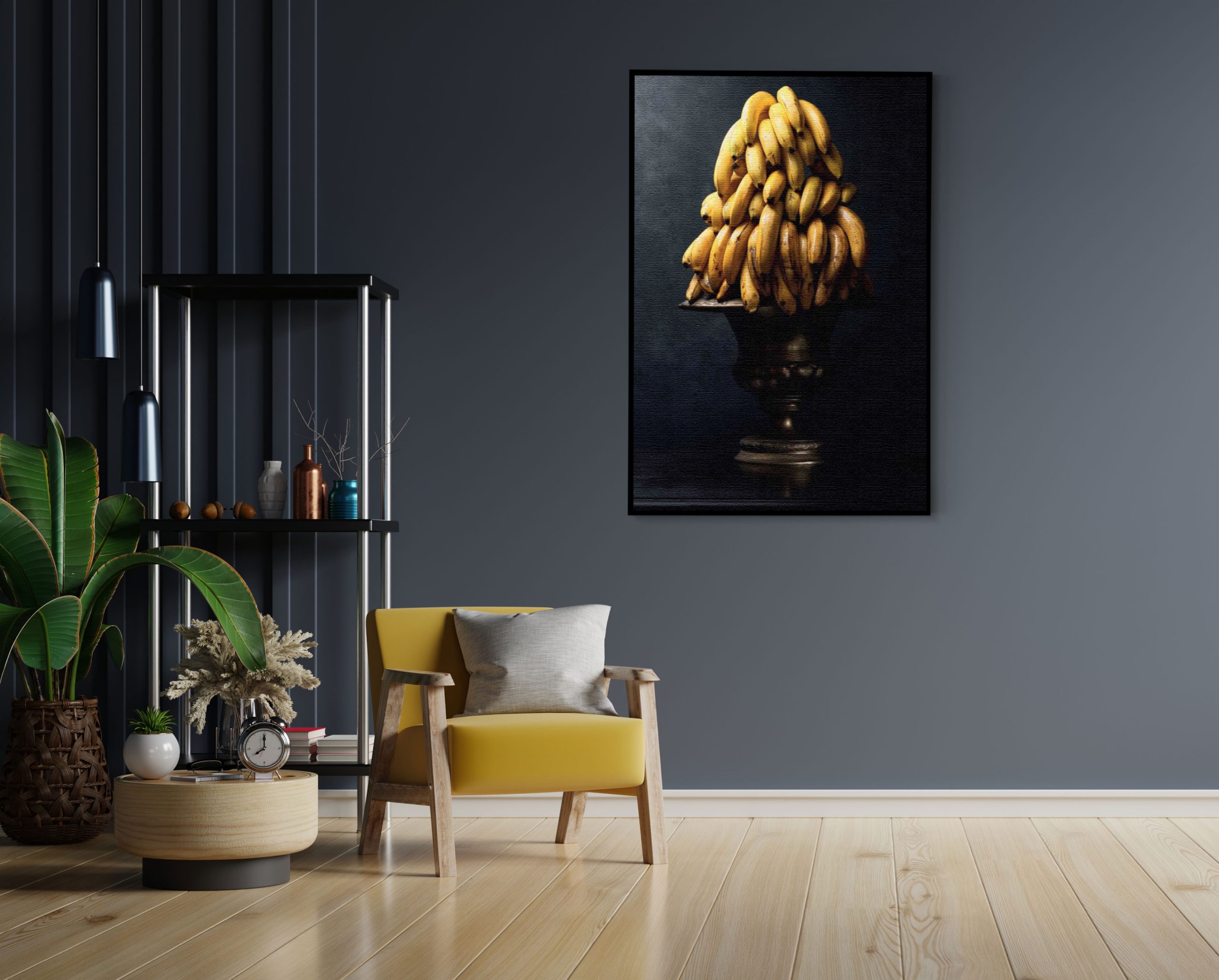 Bekijk hier het Akoestisch Schilderij Tros Bananen Schaal Rechthoek Verticaal.