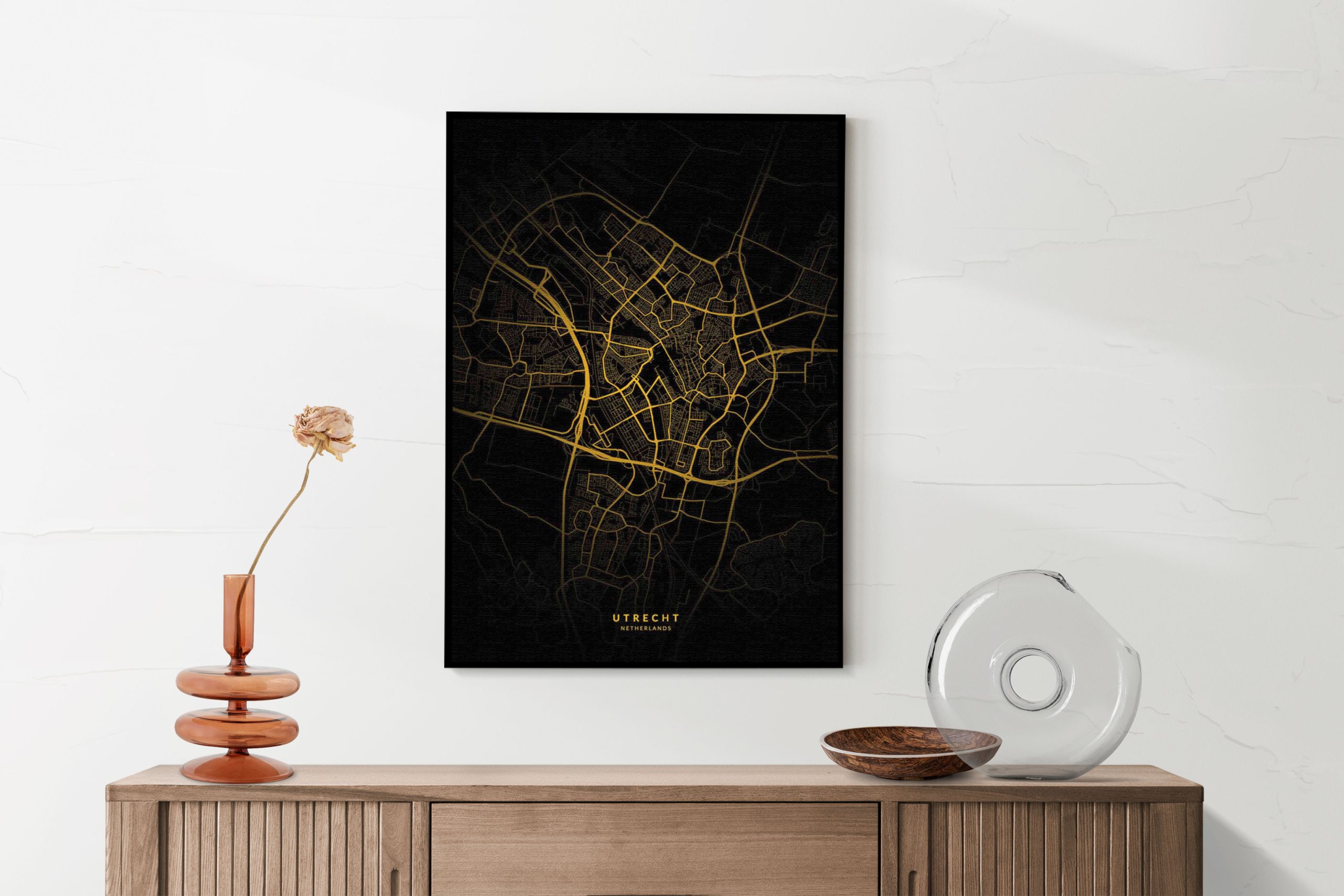 Akoestisch Schilderij – Utrecht Plattegrond Zwart Geel Rechthoek Verticaal