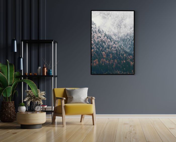 Bekijk hier het Akoestisch Schilderij Van herfst naar winter Rechthoek Verticaal.