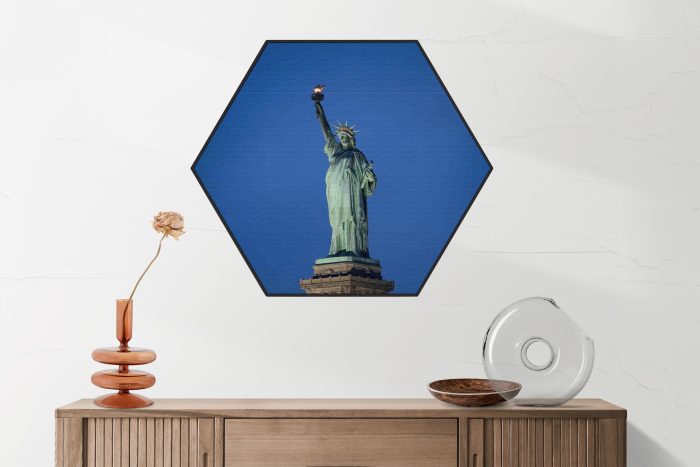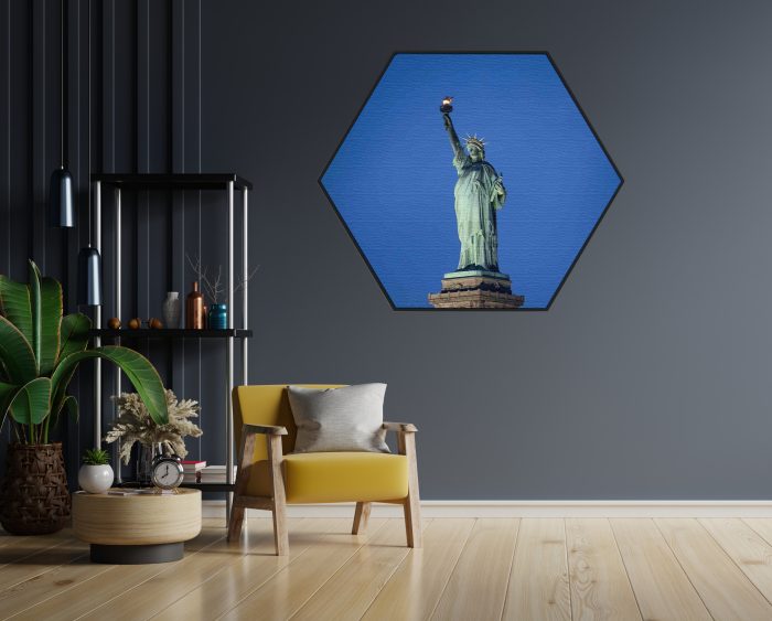 Bekijk hier het Akoestisch Schilderij Vrijheidsbeeld New York Donker 01 Hexagon.