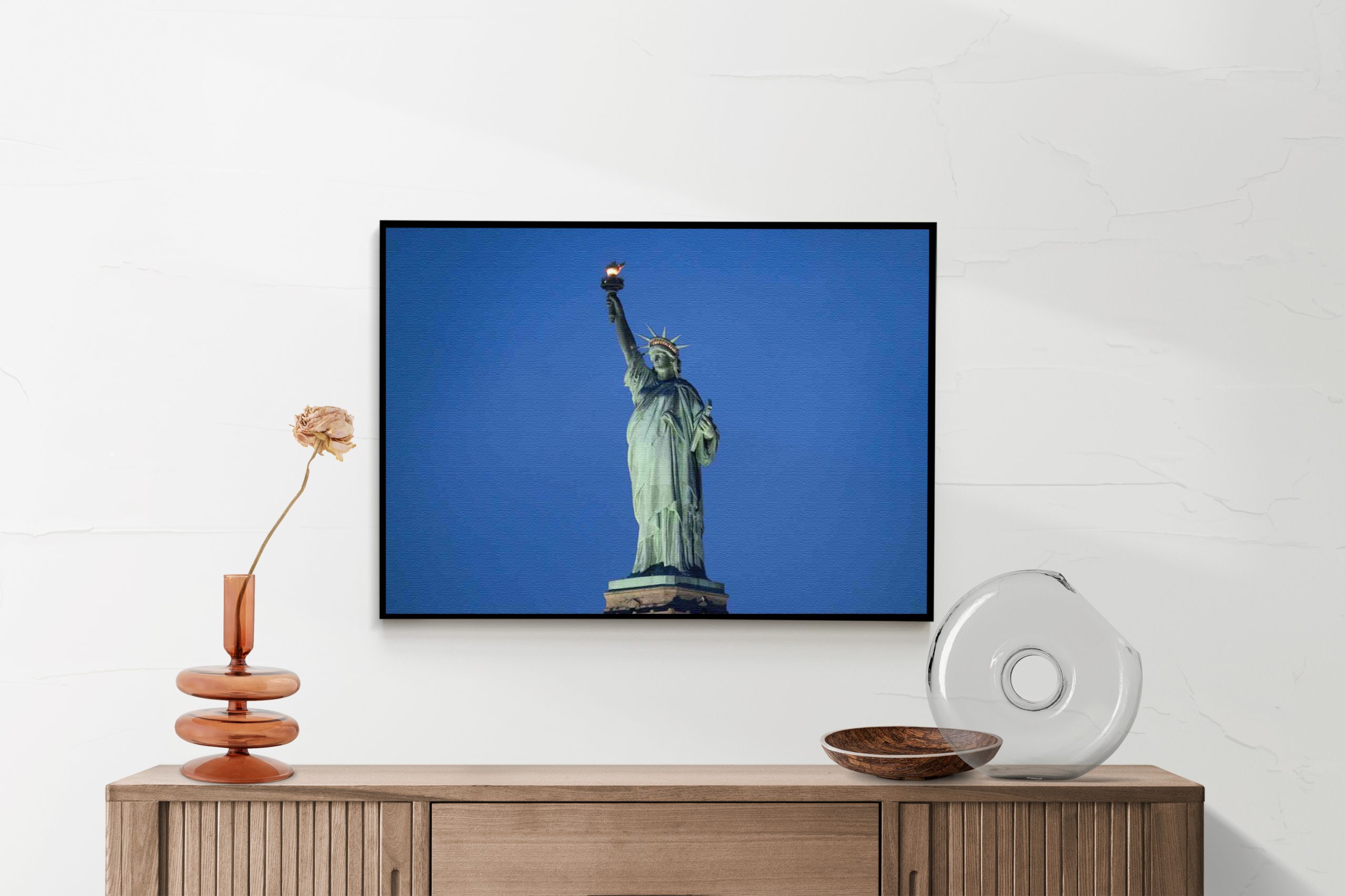 Bekijk hier het Akoestisch Schilderij Vrijheidsbeeld New York Donker 01Ā Rechthoek Horizontaal.